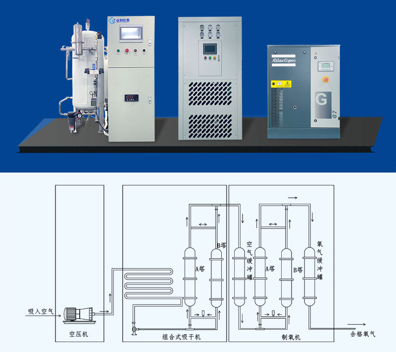 针对医疗行业对医用氧气更安全、更环保、更便捷、更经济的要求,我公司总结国内外分子筛制氧技术要点,结合本公司深耕医用气体行业多年的经验,开发出本中心制氧系统。